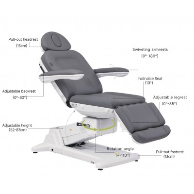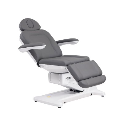 Fauteuil électrique médical et esthétique à 4 moteurs, revêtu en PU couleur gris.